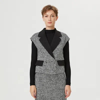 Women's Bi-material Pleated Shirt Dress With Appliqué Belt & Herringbone Print In Multi