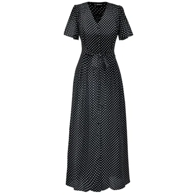 Women's Black Polka Dots Tulip Sleeves Chiffon Blouse
