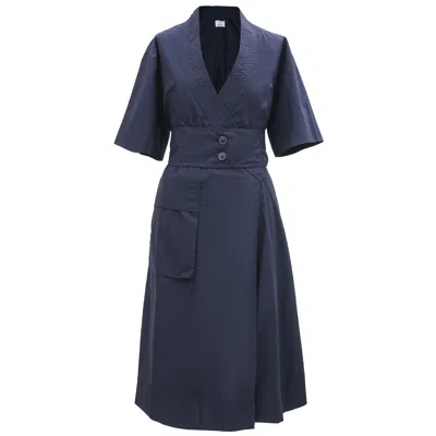 Women's Blue Cotton Kimono Wrap Dress - Navy