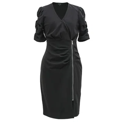 Women's Black Bi-material Wrap Dress With Tropical Print