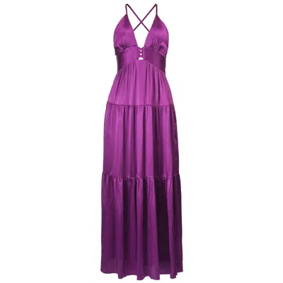Women's Pink / Purple Tiered Panels Backless Strappy Maxi Dress - Purple In Pink/purple