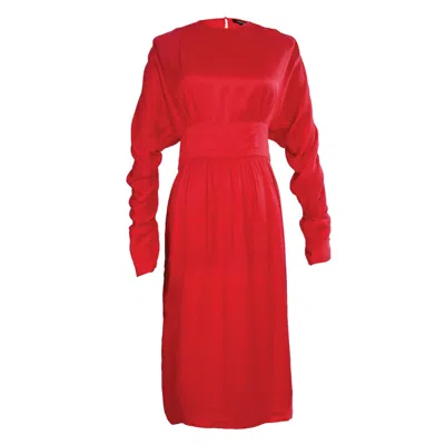 Women's Red Long-sleeved Fitted Dress With Off-shoulders