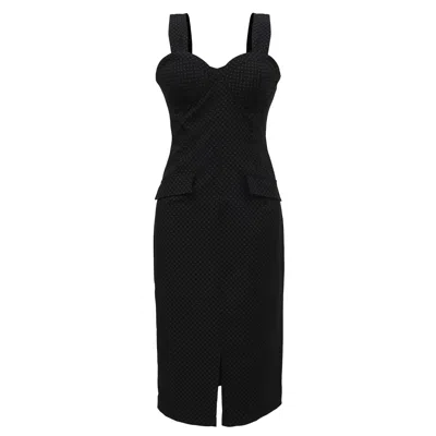 Women's Sleeveless Sheath Dress Mini Dots Print - Black
