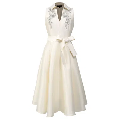 Women's White Fit-and-flare Taffeta Beaded Cocktail Dress - Cream