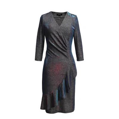 Women's Cross-heart Fit-and-flare Tiered Ruffle Shiny Dress Blue