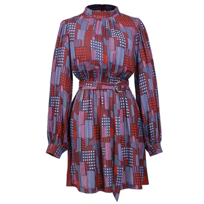 Women's Pink / Purple High Collar Cotton Shirt-dress - Burgundy In Pink/purple