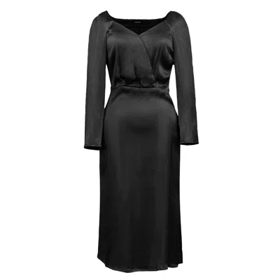 Women's Black Contrasted Trims And Tiered Panel Maxi Dress