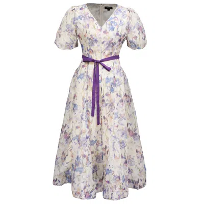 Women's Neutrals / White Flower Print Fit-and-flare Tea Organza Dress - Multicolor