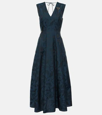 Diego Pleated Jacquard Midi Dress In Navy