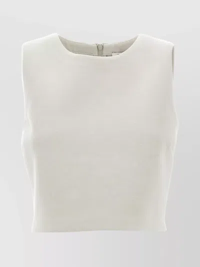 Plain Pattern Sleeveless Round Neck Cropped Top In White
