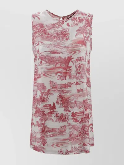 Sleeveless Round Neck Top Printed Pattern In Pink