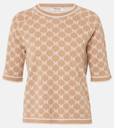 Tivoli Knit Jacquard Logo Cardigan In Beige/white