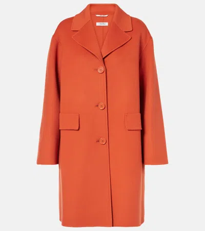 Single-breasted Wool Coat In Orange