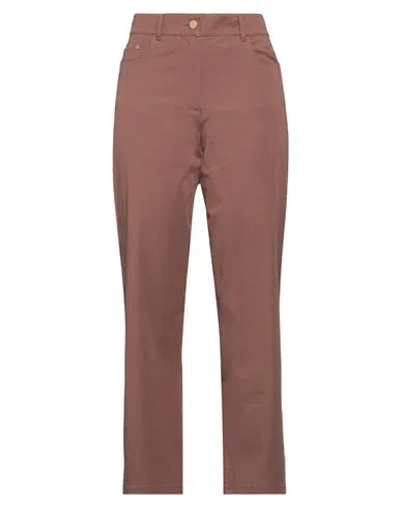 ' Woman Pants Brown Size 6 Cotton, Elastane