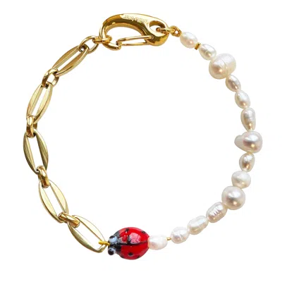 Women's Gold / White / Red Baroque Pearl Necklace Luisa In Multi
