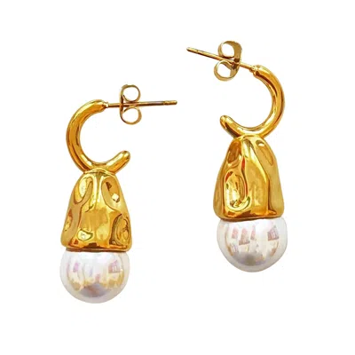 Women's Gold / White Glass Dangle Earrings Esther In Multi