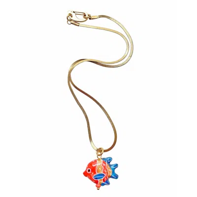 Women's Red / Gold Murano Glass Chili Necklace In Multi