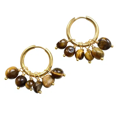 Women's Gold / Brown / Pink Hoop Earrings Honey Jasper & Rose Quartz Symi