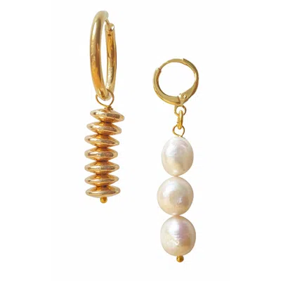 Women's Gold / White / Yellow The Happy Pearl Hoop Earrings In Multi