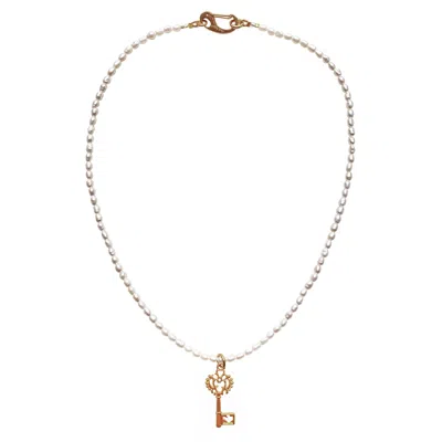 Women's Gold / White Pearl Necklace Love Key In Multi