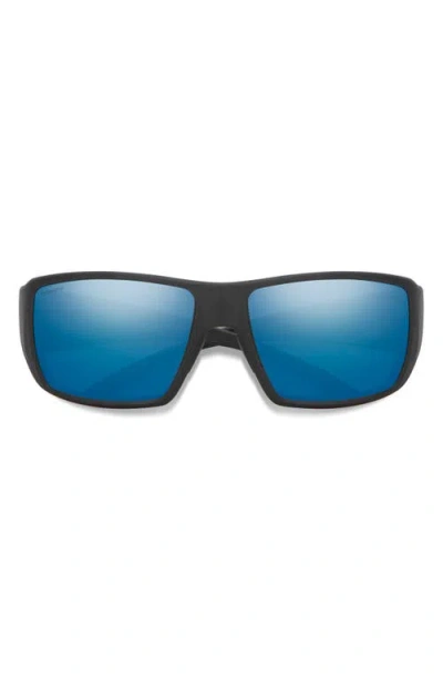 Guide's Choice 62mm Polarized Oversize Wraparound Sunglasses In Black/chromapop Glass Blue