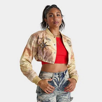 Women's Christy Crop Denim Bomber Jacket In Gray