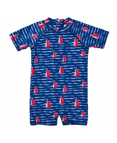 Boys' Sailboat Rock Short Sleeve Sunsuit - Baby In Navy