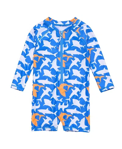 Boys' Shark Squad Long Sleeves Sunsuit - Baby In Blue