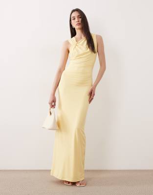 Asymmetric Knot Detail Maxi Dress In Yellow