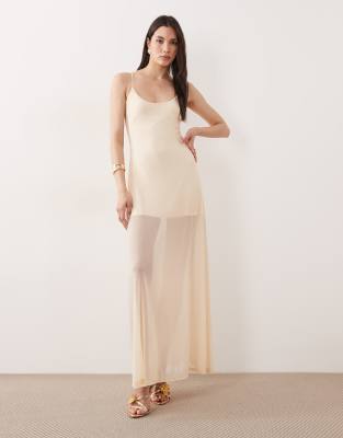 Scoop Neck Cami Sheer Hem Maxi Dress In White