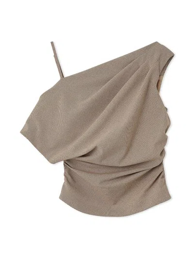 Puff Sleeve Knit Long Sleeve Top In Brown