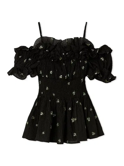 Chiffon Off-shoulder Frill Blouse In Black
