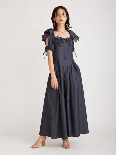Chacott Knit & Back Bow Puff Sleeve Midi Dress In Blue