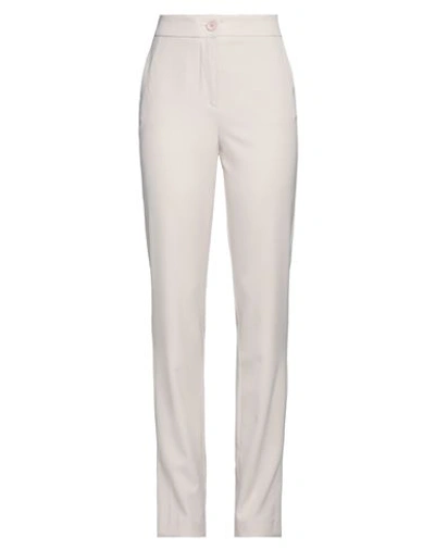 Woman Pants Off White Size 6 Polyester, Elastane In Pink