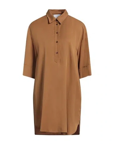Woman Mini Dress Camel Size 6 Lyocell In Beige