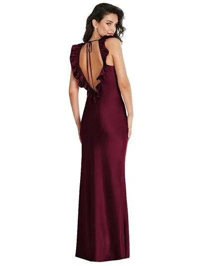 Ruffle Trimmed Open-back Maxi Slip Dress In Burgundy