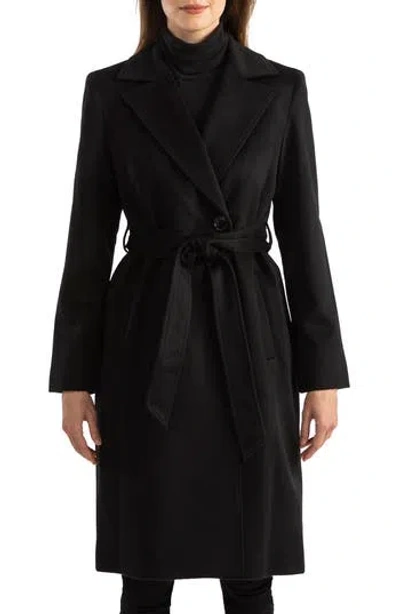 Belted Notch Collar Wool & Cashmere Blend Coat In Black