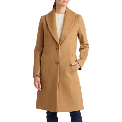 Wool Blend Notch Lapel Coat In Camel