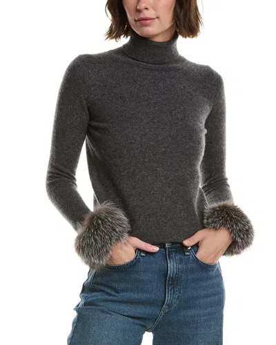 Ruffle Mock Neck Cashmere Sweater In Gray