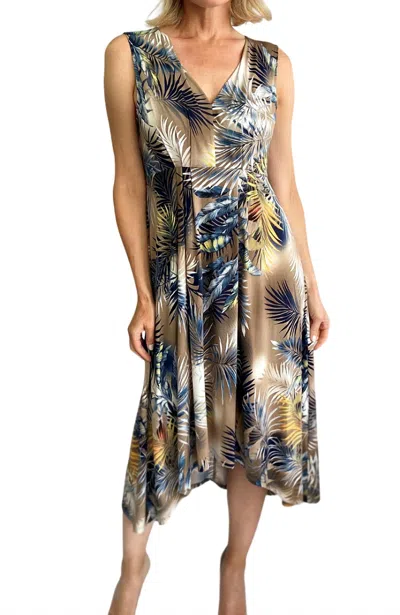 Hi Low V Neck Dress In Blue Palms In Multi