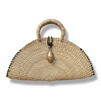 Women's Black / White / Neutrals Large Kusana Half-moon Handwoven Bag With Brass Mask Charm. In Multi