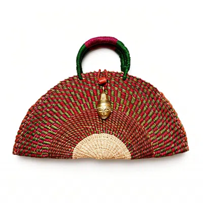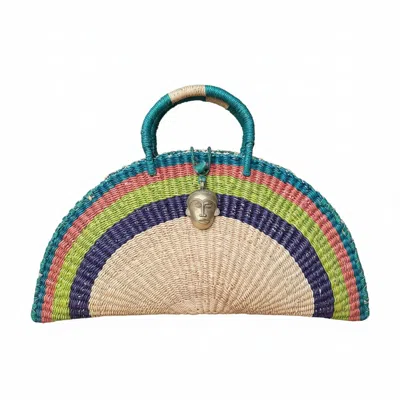 Women's Green / Red / Blue Large Kusana Half-moon Handwoven African Bag With Brass Mask Charm In Multi