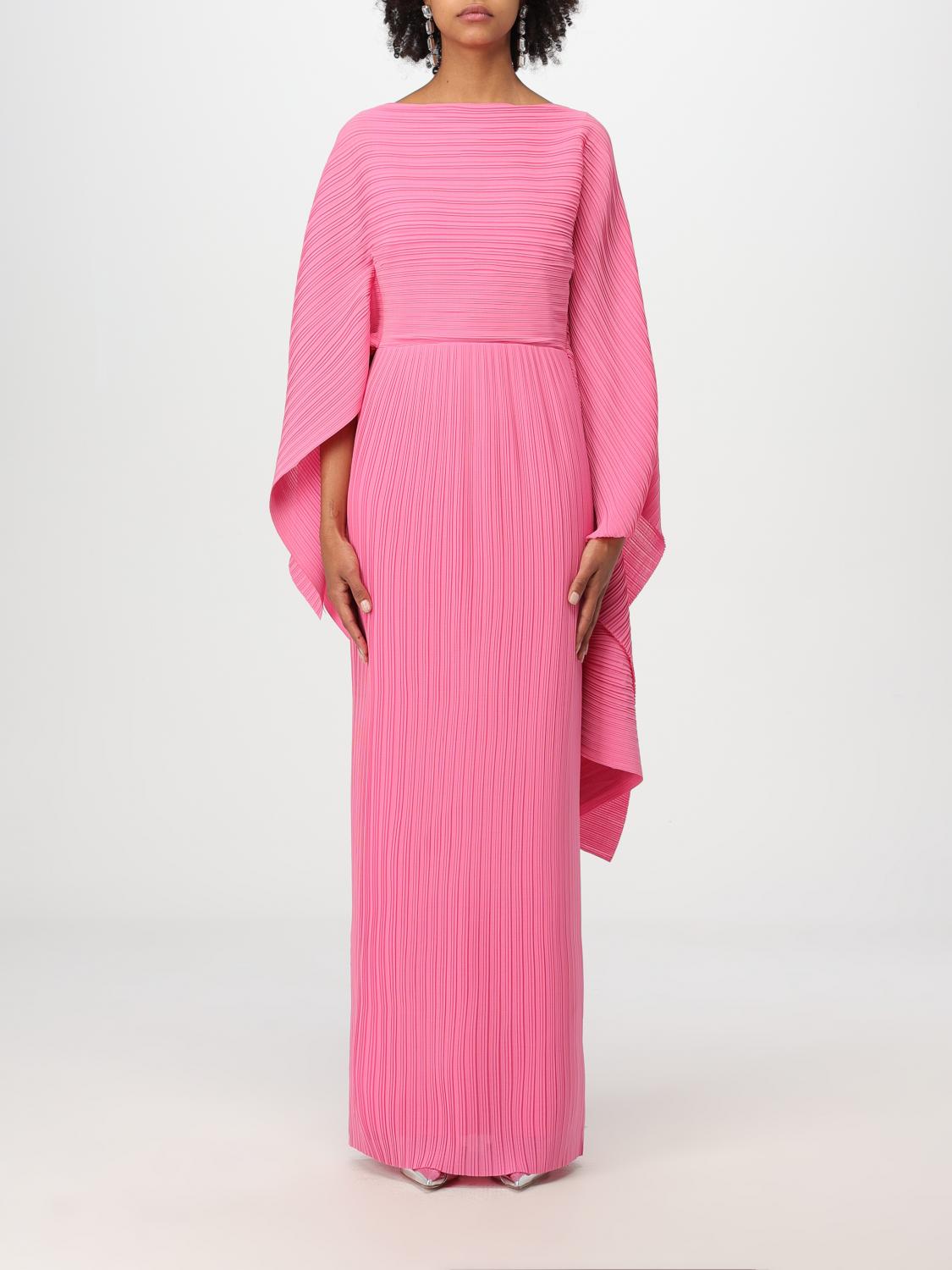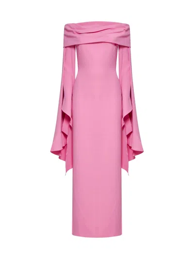 Tiffany Pink Long Dress With Draped Details And Flared Skirt In Twill Woman