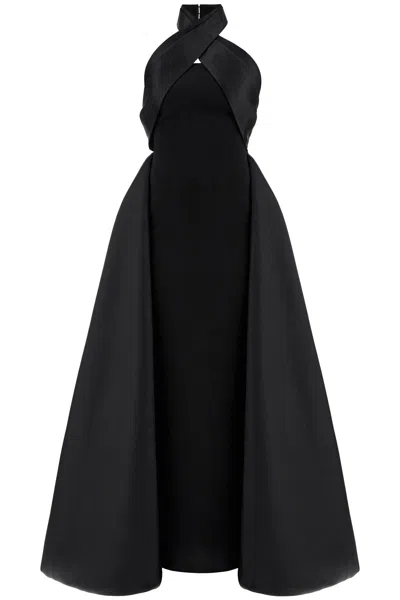 Cece Draped Satin And Crepe Maxi Dress In Black