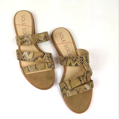 Women's 3 Strap Snake Slide Sandals In Tan In Multi