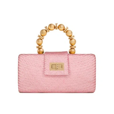 The Gracie Woven Buntal Straw Clutch Bag In Pink