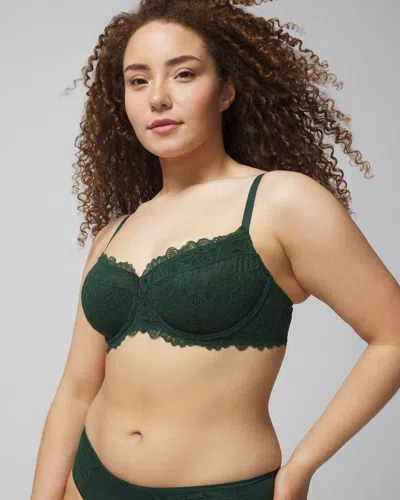 Balconette Unlined Bra With Lace In Green Size 40dd In Lush Emerald