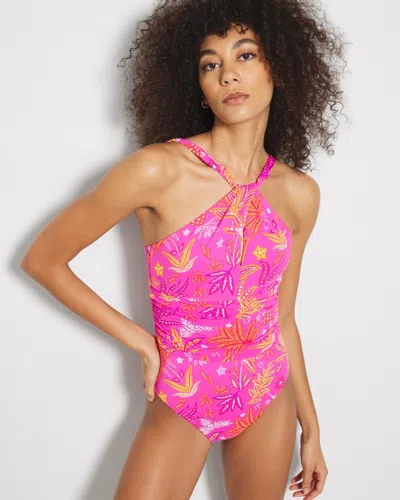 Women's Bleu Rod Desert Bloom High-neck One-piece In Pink Size 14 | In Dahlia Multi