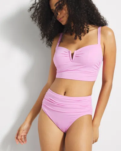 Women's Swim Ruched High-waist Bikini Bottom In Purple Size 2xl In Meta Mauve