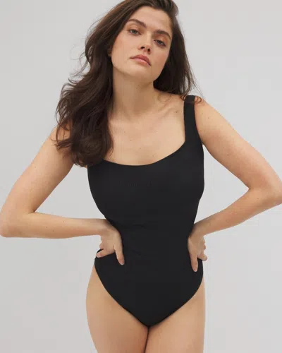 Women's Swim Deep Plunge One-piece In Black Size 12 In Black Crinkled Rib